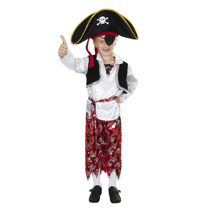 В комплекте: рубашка, брюки, пояс, шляпа, повязка на глаз..