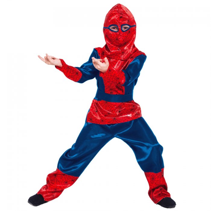 Наряд свободного покроя не сковывает движений и отлично садится по фигуре — Человек-паук легко сможет выполнять различные трюки. Дополняет комплект маска с прорезями для глаз. Такой костюм прекрасно подойдёт для всевозможных праздников, утренников, тематических мероприятий и фотосессий!