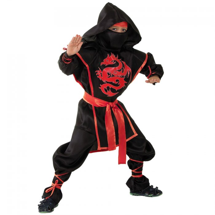 Карнавальный костюм "Ниндзя: Красный дракон" создаст воинственный образ мастера восточных единоборств. Чёрный наряд с ярко-красными элементами смотрится величественно и эффектно. Он наделит своего обладателя смелостью, ловкостью и укрепит силу воли.