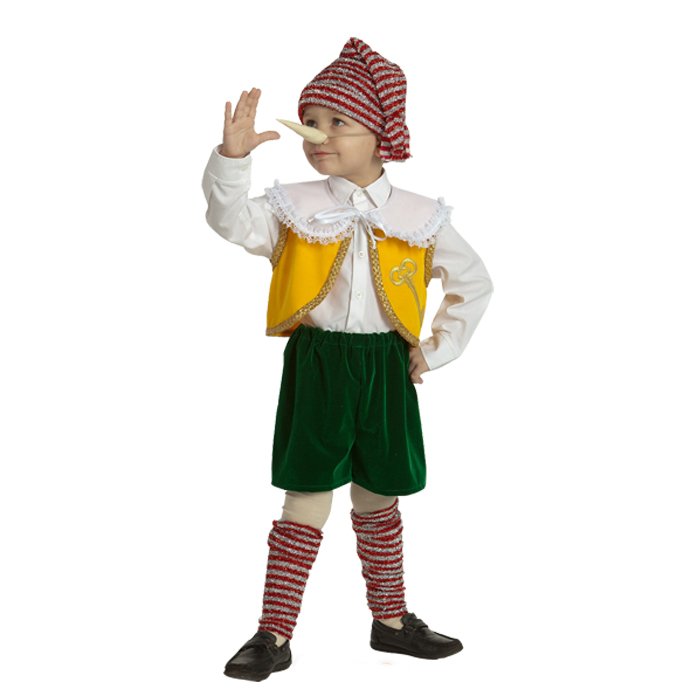 Детский карнавальный костюм «Буратино» - это замечательный способ обеспечить ребенка и всех гостей отличным настроением на весь праздник. Яркий наряд любимого персонажа запомнится всем гостям: желтая жилетка с шикарным белым воротником, бархатные изумрудные шорты, полосатый колпачок с гетрами и длинный задорный нос. Ребенок сам придумает веселую сказочную игру.Это будет настоящий праздник для всей Вашей семьи, а они очень сближают.